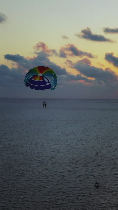 Glide through the air wearing an open parachute tethered to a speedboat whilst reveling in the breathtaking view of the Maldivian islands and endless shades of blues from a bird's eye view. Enjoy a whole new perspective with this most sort after sports on thrill seekers list. Whether you’re an adrenaline junkie or simply looking for a unique way to admire the island’s beauty, this experience is perfect for you. No experience? No problem! Our professional team ensures a smooth and safe ride, so you can focus on enjoying the wind in your hair and the unforgettable views. Book your parasailing adventure today and take your Maldives experience to new heights!