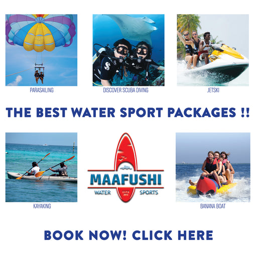 Go Fun Ride – Double the Thrill, Double the Fun! Parasailing (10-15 mins) Jet Ski (15 mins) Fun Tube (10 mins) Kayaking (60 mins) Ready for an exhilarating water adventure in Maafushi? The Go Fun Ride is the perfect activity for two people looking to experience high-speed excitement on the waves! Hold on tight as you glide, bounce, and splash across the crystal-clear waters of the Maldives. Whether you're riding with a friend, partner, or family member, this fun-filled towable ride guarantees laughter, thrills, and unforgettable memories. Our experienced team ensures a safe yet adrenaline-packed experience, making it a must-try for adventure seekers.
