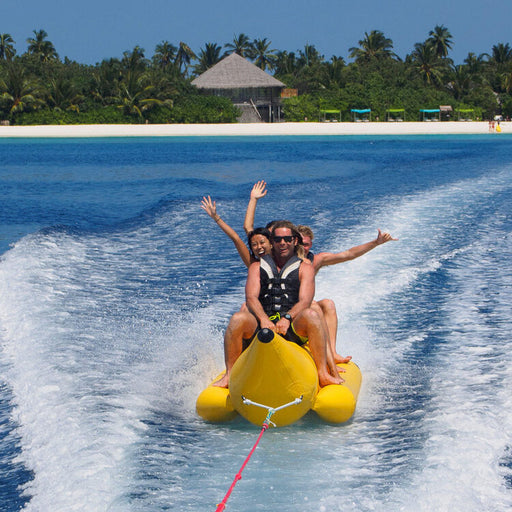 FUN TUBE Brace for an adrenaline-filled ride with big splashes and big fun with fun tubing. An excellent choice for all ages and families. No prior experience or significant effort required, just hold on tight! BANANA RIDE Banana ride is an incredibly thrilling and fun inflatable water ride. Just grab on and be ready to bounce off the waves with friends and family!